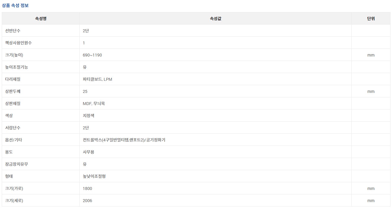 [코아스] 책상 1800×2006×690~1190mm 1인용